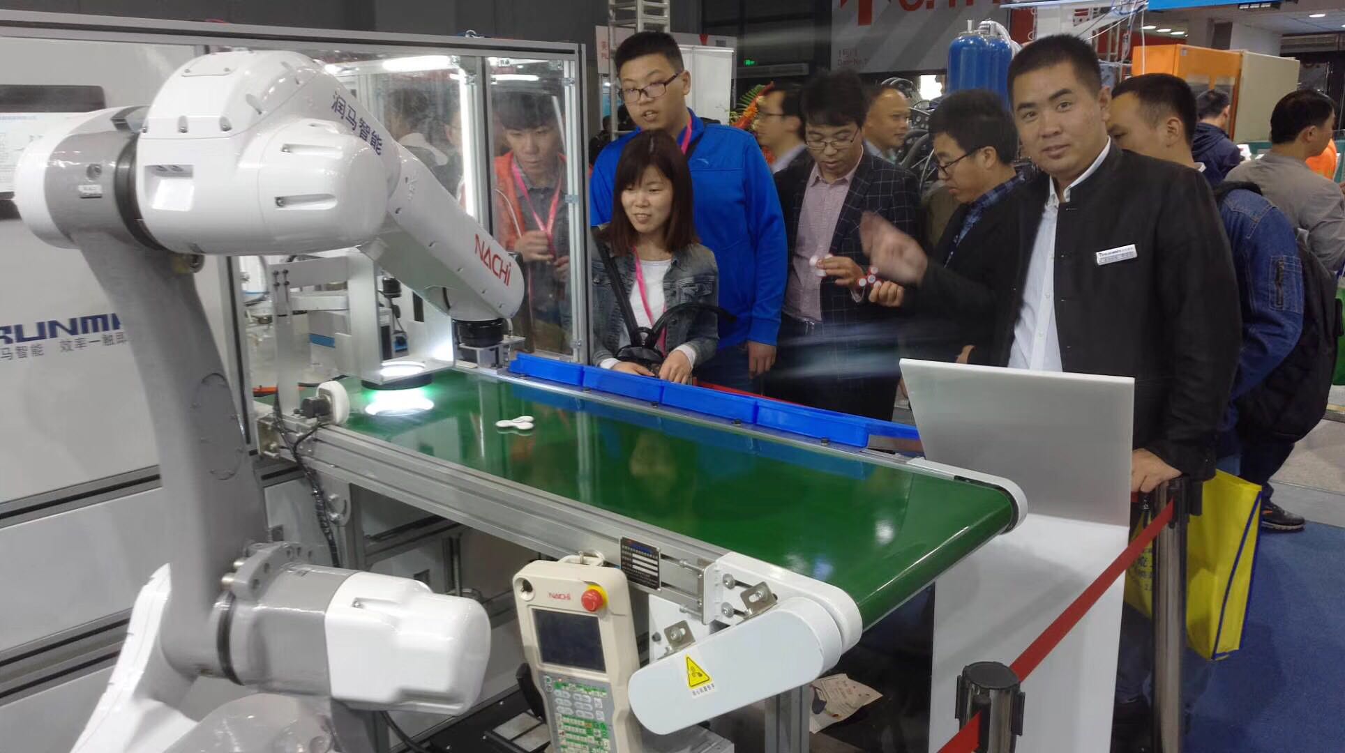 2018年中國開展塑膠工業(yè)展覽會(huì),潤馬智能一如既往的參加,我們潤馬智能機(jī)械手展示勒六套自動(dòng)化機(jī)械手的應(yīng)用,其中有一套小編必須要介紹一下,因?yàn)檫@個(gè)機(jī)械手的應(yīng)用讓我們展館人氣爆棚走到哪里都知道我們是發(fā)指尖陀螺的,因此我們針對(duì)這次展會(huì)做了一套指尖陀螺組裝的一個(gè)應(yīng)用,根據(jù)我們?cè)O(shè)定好的功能步驟去自動(dòng)組裝好一個(gè)成品的指尖陀螺,并且我們現(xiàn)場直接送出去,話不多說請(qǐng)看下圖排隊(duì)領(lǐng)取指尖陀螺的人吧